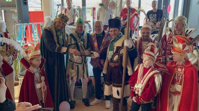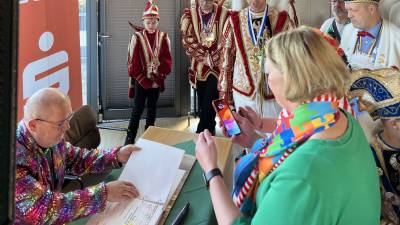 Bürgermeister Achim Henkel nahm vom Dreigestirn der Karnevalsgesellschaft Holzentrop den im letzten Jahr übergebenen Rathausschlüssel entgegen, um ihn für ein Jahr an das Dreigestirn des Festkomitee Finnentroper Karneval weiter zu reichen. Anschließend trugen sich die amtierenden Tollitäten in das „Goldene Buch“ der Gemeinde Finnentrop ein.