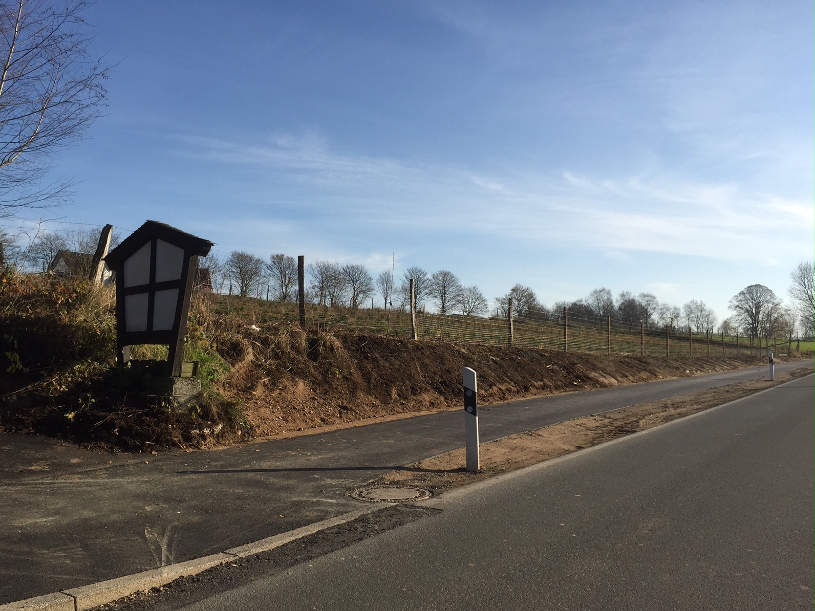 Bereits in den 1990er Jahren waren an der K 30 Gehwege in einer Breite von ca. 2 m zwischen Müllen und Schönholthausen sowie Ostentrop und Fretter angelegt worden. Für die Schließung der danach verbleibenden Lücke zwischen Schönholthausen und Ostentrop sah der Kreis Olpe allerdings lange Zeit keinen Bedarf.