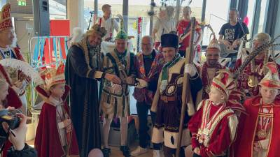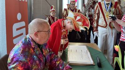 Bürgermeister Achim Henkel nahm vom Dreigestirn der Karnevalsgesellschaft Holzentrop den im letzten Jahr übergebenen Rathausschlüssel entgegen, um ihn für ein Jahr an das Dreigestirn des Festkomitee Finnentroper Karneval weiter zu reichen. Anschließend trugen sich die amtierenden Tollitäten in das „Goldene Buch“ der Gemeinde Finnentrop ein.